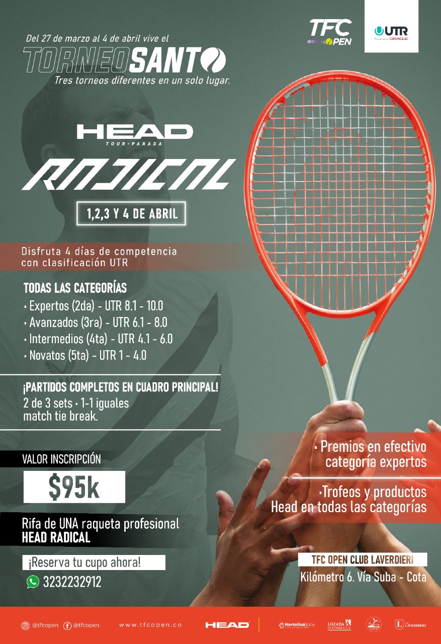 HEAD TOUR es un circuito creado por TFC OPEN y HEAD Colombia. A lo largo de un año se realizan doce paradas divididas en 4 categorías de juego: novatos, intermedios, avanzados y expertos.